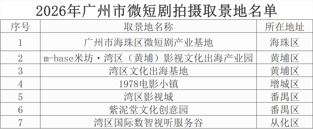 本期我们整理了广州市微短剧拍摄基地名单: