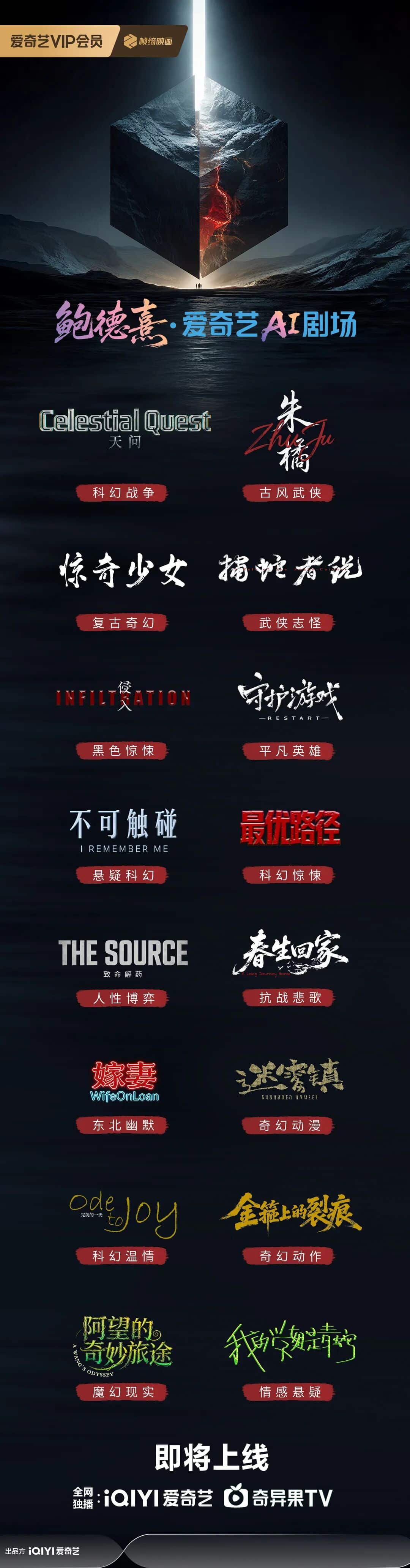 作为国内首个“AI剧场”,“鲍德熹·爱奇艺AI剧场”由爱奇艺联合奥斯卡得主鲍德熹先生共同发起,旨在打造一批15分钟以上、兼具艺术性和商业性的AI叙事影片。经过激烈的选拔,最终16个优秀项目脱颖而出,启动制作。这些作品涵盖古风武侠、复古奇幻、武侠志怪、情感悬疑等多种题材,目前16部入围作品已全部制作完毕,继《天问》后,余下15部作品将从4月7日起,每天更新1部,为观众持续带来技术与艺术碰撞的震撼观影体验。